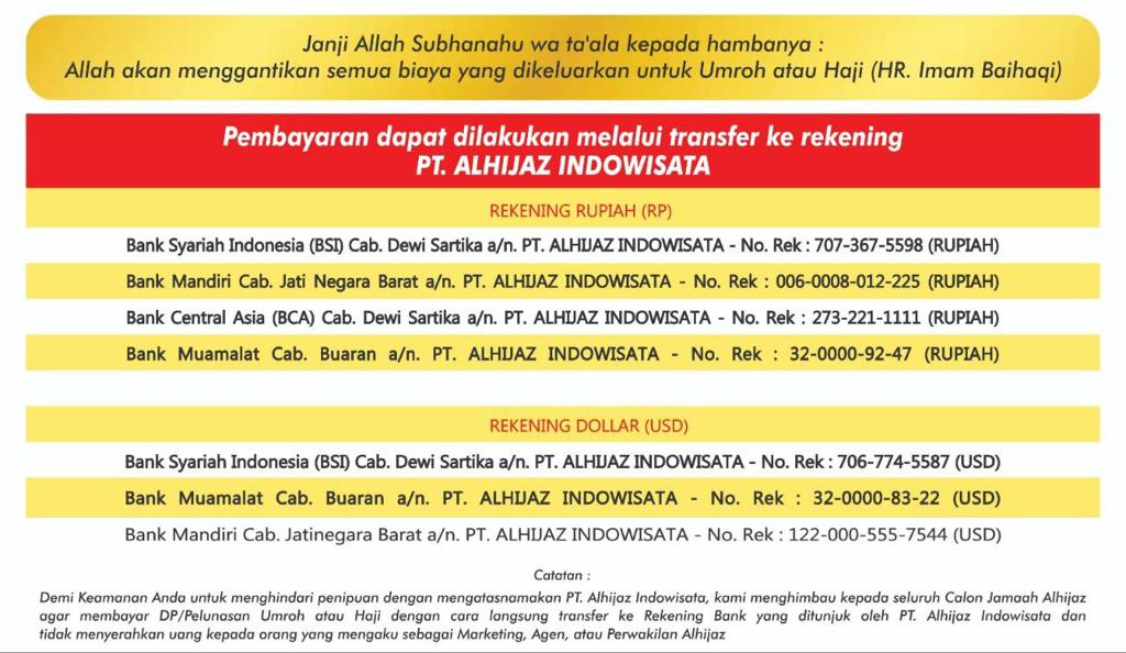 5. Membayar lunas biaya badal dengan transfer atau tunai di kantor Alhijaz